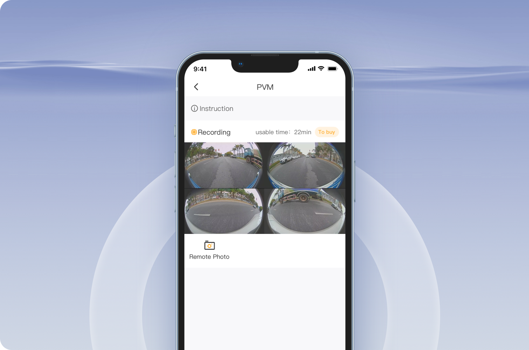 Open the PVM function in Carmate, you can monitor the car surroundings in real time through the 360 lens, real-time control of the information around the car, to protect the safety of the car.